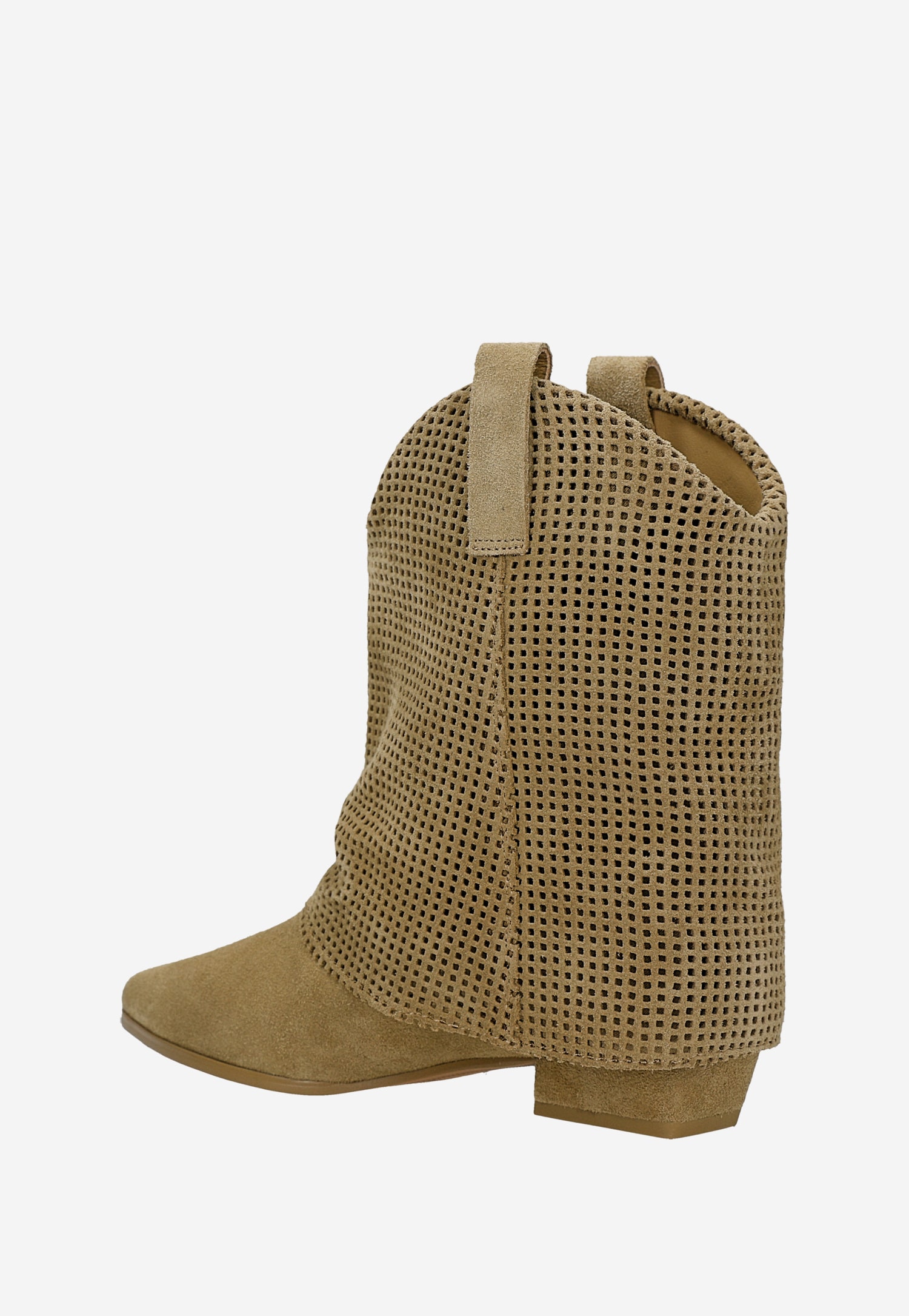 Te beżowe botki to idealne połączenie komfortu i nowoczesnego designu. Ażurowa cholewka z dwoiny welurowej nadaje im wyjątkowego charakteru, zapewniając jednocześnie doskonałą przewiewność – Twoje stopy będą oddychać nawet w cieplejsze dni. Model ten doskonale wpisuje się w urban styl, tworząc modne zestawienia z jeansami, zwiewną sukienką czy eleganckimi spodniami typu chino.