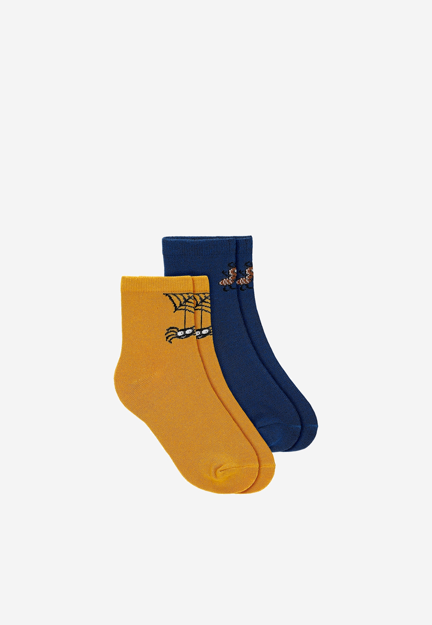 2-balenie tmavomodré a oranžové chlapčenské ponožky s hmyzom BARTEK 85704-48